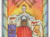 The angel figure in this card glides through, above and among an infinite crowd of nameless / faceless beings. She is above them and at one with them at the same time. A unicursal hexigram is imprinted on her gown and the stigmata markings of Christ are imprinted on her skin.