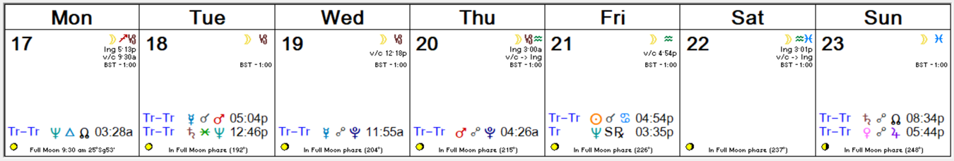 Here is this week’s astro calendar; click on it to view it full-sized.